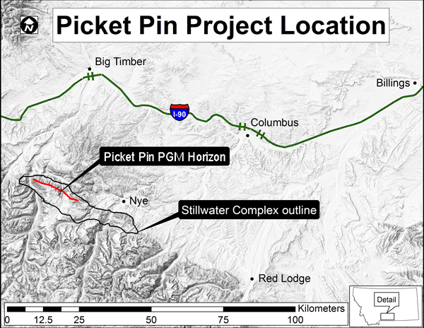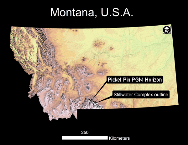 The Picket Pin horizon is 22 kilometers in length and is located stratigraphically above the world’s highest grade PGM mineraliztion horizon known as the “J-M Reef” which is currently being mined by Stillwater Mining Company.